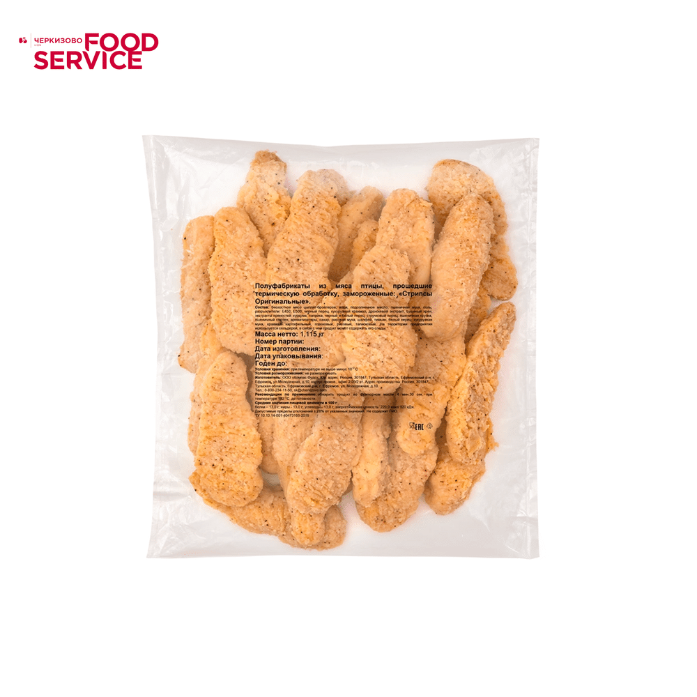 Бескостное мясо цыплят-бройлеров, вода,подсолнечное масло, пшеничная мука, соль, разрыхлители: Е450, E500; черный перец, кукурузный крахмал, дрожжевой экстракт, сушеный хрен, экстракты пряностей: куркума, паприка, черный и белый перец, стручковый перец; пшеничная крупка, пшеничный глютен, ароматизаторы, сахар, рисовая мука, шалфей, тимьян, белый перец, кукурузная мука, крахмал: картофельный, гороховый, рисовый, тапиоковый.